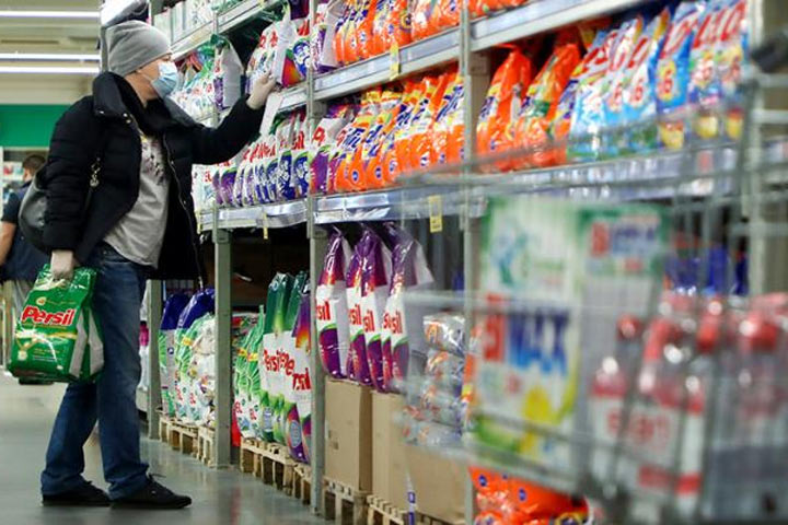 На фото: покупка стирального порошка в одном из супермаркетов Москвы. (Фото: Антон Новодережкин/ТАСС) Цены на лекарства, овощи,