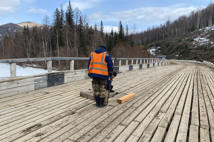 До окончания реконструкции силами подрядной организации будет выполняться еженедельный ремонт существующего моста. Так, специалисты «Ширинского ДРСУ» провели ремонт верхнего дощатого настила.