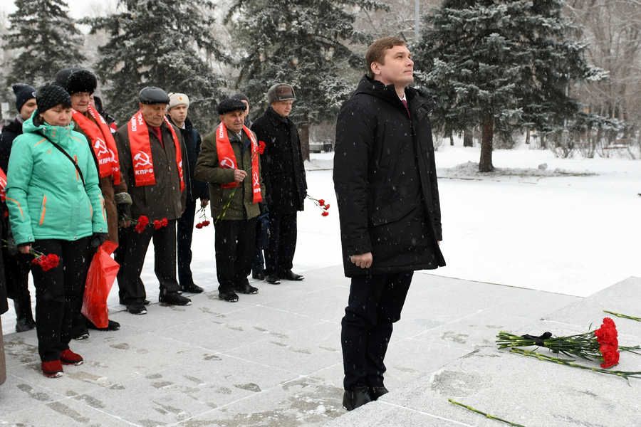 Валентин Коновалов (КПРФ) с товарищами возложили цветы к памятнику Владимиру Ильичу Ленину на Первомайской площади Абакана в память об этом эпохальном событии.