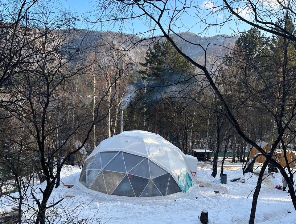 Проект реализован при поддержке правительства Хакасии. Геокупол изготовили в Барнауле на заказ, фундамент и пол делали самостоятельно.