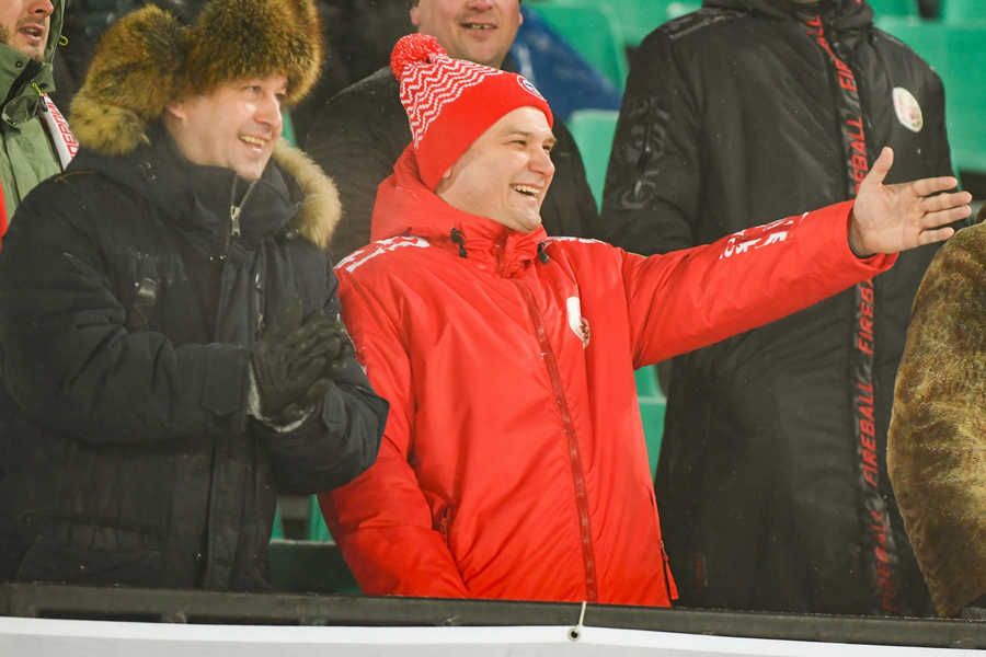 Поболеть за хакасскую команду пришли глава региона Валентин Коновалов и Председатель Верховного Совета Сергей Сокол. На головах чиновников красовались фирменные красные шапки с логотипом "Саян".
