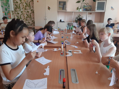 Члены Общественной палаты Наталья Дьяченко и Юлия Константинова изготовили вместе с учениками школы №7 города Абакана, из бумаги белых голубей, которые считаются символом мира. В клюве каждому голубку прикрепили ленточки – триколор, а затем ребятишки подарили поделки горожанам, чтобы напомнить – впереди праздник, День России!