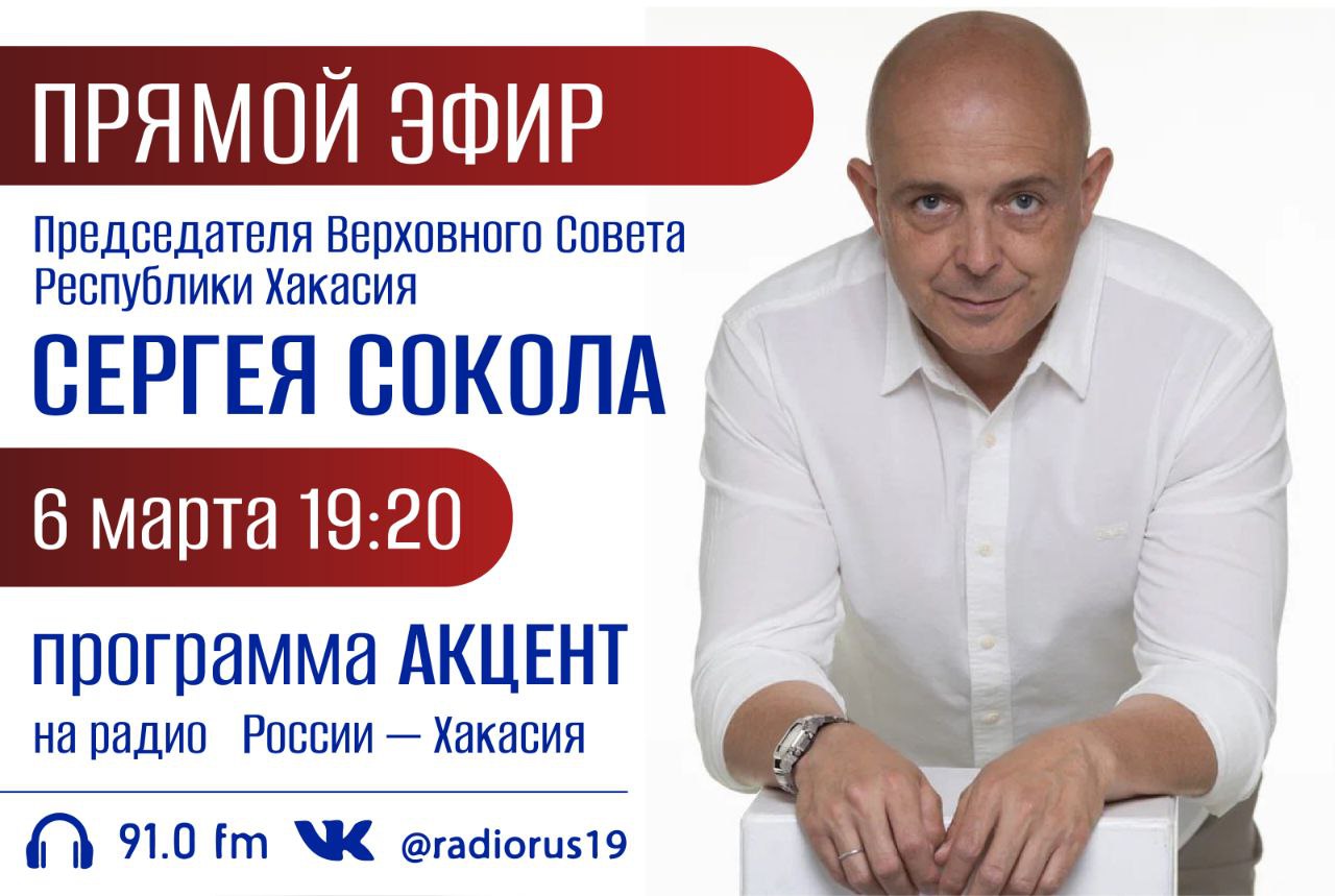 Сергей Сокол в прямом эфире на «Радио России – Хакасия» 91,0 FM ответит на вопросы ведущего Егора Генриха и слушателей.