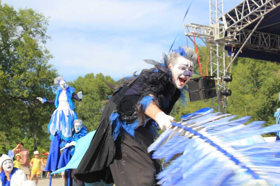 И тут начались чудеса – райские птицы, моря и океаны, невероятные облака и планеты, волшебные перья, небесные игры и много-много чего ещё. Яркие сны снова превращались в обыденную реальность и обратно. Заплывали на площадку гигантские медузы и прекрасная рыба, которая выпустила на юных зрителей забавные пузырьки. И даже маленькая версия воздушного шара приземлялась в Зоне отдыха. Зрители были буквально захвачены этим перформансом, а некоторым и вовсе посчастливилось стать его полноценным участником – изображать море, помогать перемещаться медузам и другим морским существам.