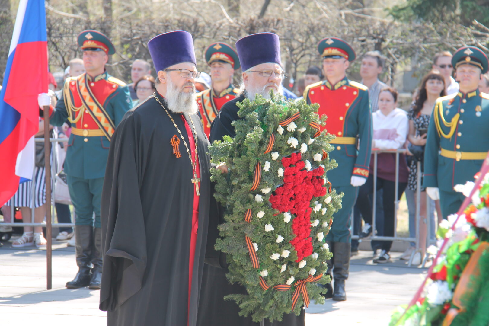 Накануне Дня Победы Управляющий епархией принял участие в церемонии возложения цветов к Мемориалу воинской славы в столице Хакасии