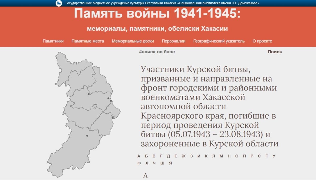 Имена солдат из Хакасии - участников Курской битвы направлены для включения в базу данных «Участники Курской битвы», формируемую государственным архивом Курской области.