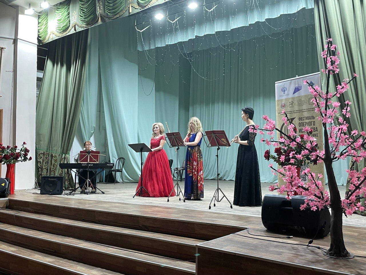 Партии фортепиано исполнила заслуженная артистка Хакасии Ирина Малина. Провела концерт - Татьяна Шепелева.