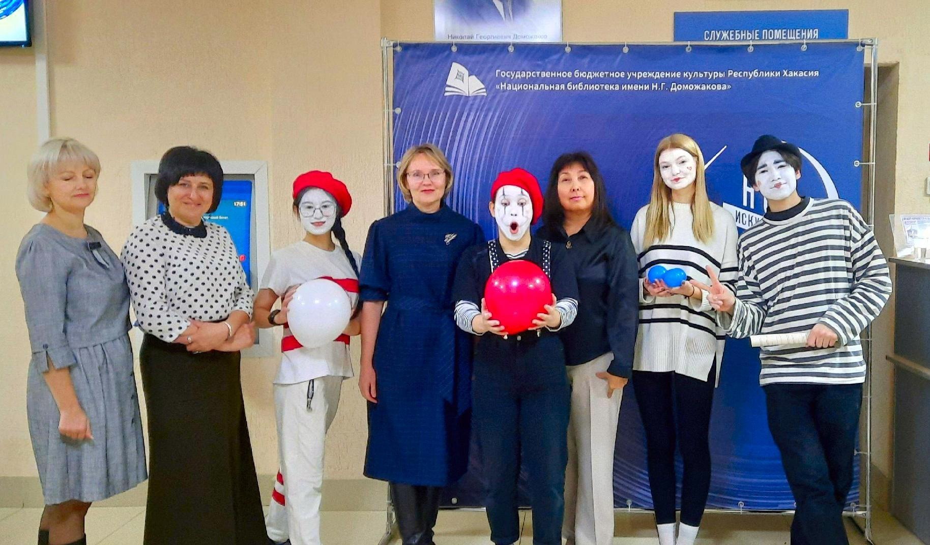 Необычную праздничную атмосферу помогала создавать мим-группа студентов-театралов, которые приветливо встречали в этот вечер многочисленных гостей Национальной библиотеки им. Н.Г. Доможакова, пришедших на «Ночь искусств».