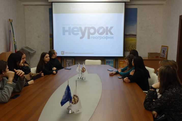 Второе мероприятие в рамках акции состоялось в столице Хакасии – городе Абакане, в офисе заповедника "Хакасский". На "НЕурок географии" пригласили студентов второго курса специальности "Биоэкология" Института естественных наук и математики ХГУ имени Н.Ф. Катанова. Сначала для гостей провели обзорную экскурсию по музею-природы заповедника, познакомили с территориальной структурой, физико-географическим положением, флорой и фауной, а также с редкими представителями заповедника "Хакасский". А затем студенты приступили к увлекательной игре "Заповедные знатоки", основанной по принципу известной телепередачи "Своя игра". Студенты поделись на две команды и отвечали на предложенные вопросы по трём категориям: живая природа, увлекательный туризм и общие вопросы.