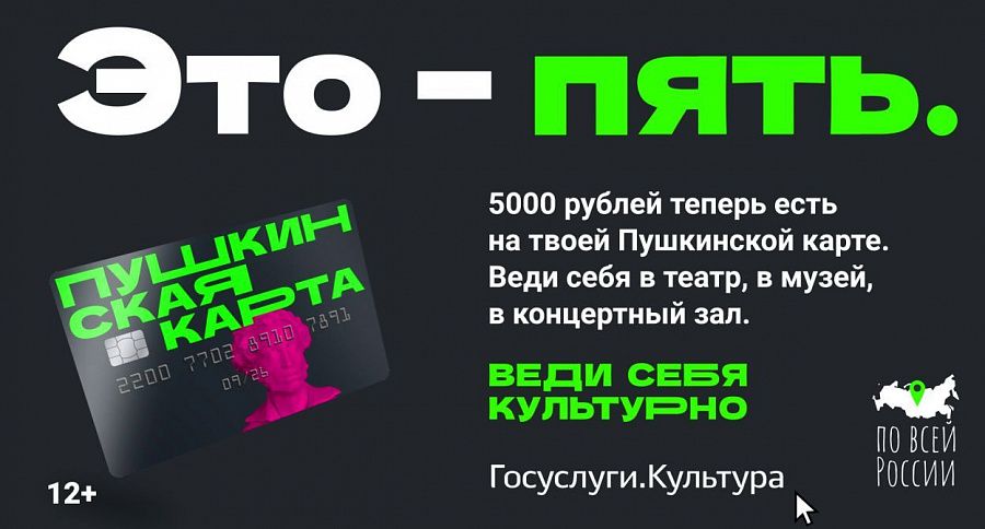 Если вам от 14 до 22 лет, и у вас всё ещё нет такой карты, то поторопитесь ее оформить, чтобы не упустить возможность получить в 2023 году 5000 рублей на культурные мероприятия.