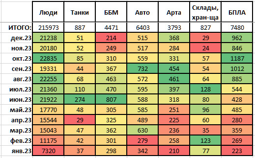 2023-2024 гг.Потери ВСУ за 2023-й год по данным сводок Минобороны России
