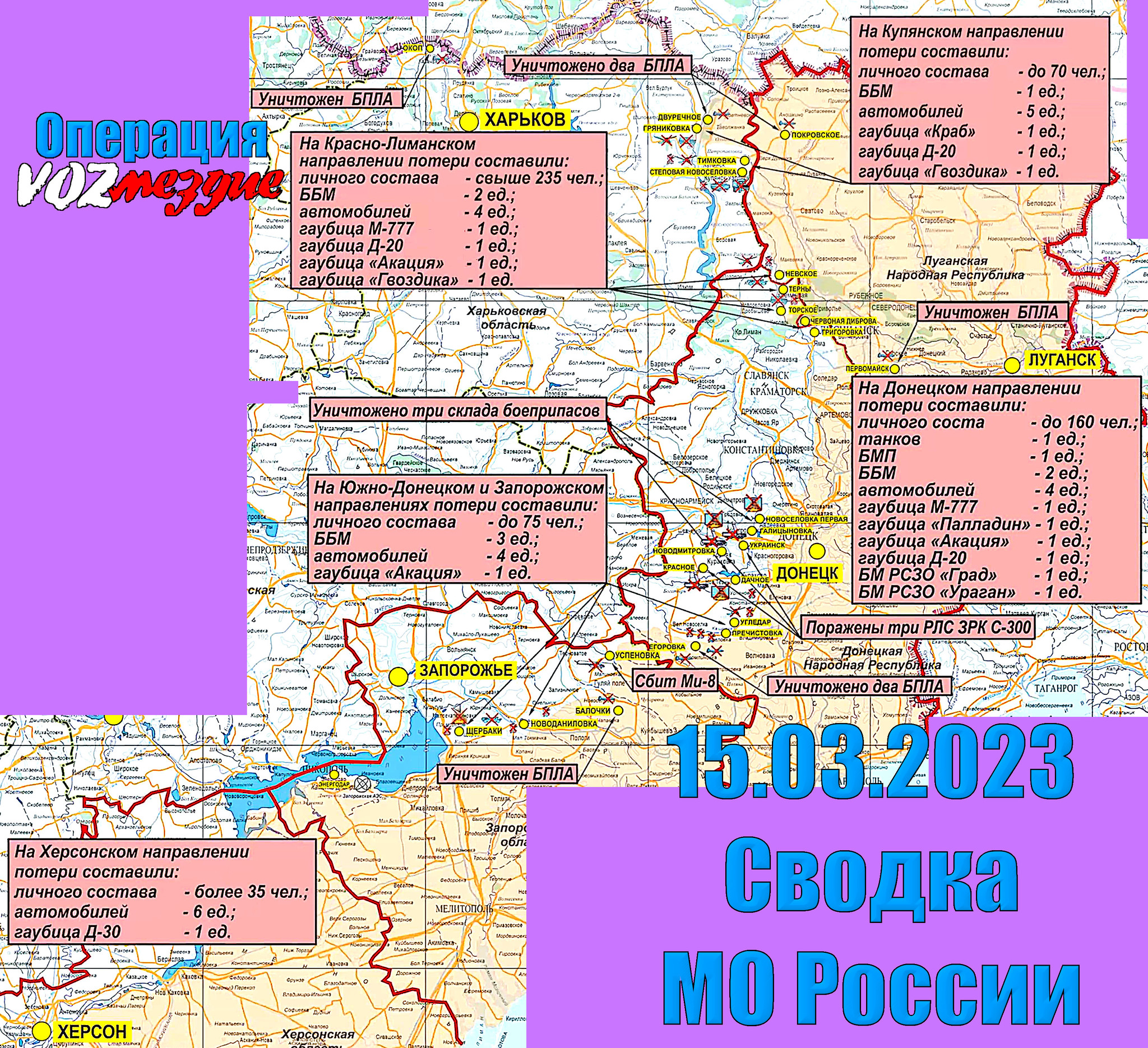 Оперативно-тактической и армейской авиацией, ракетными войсками и артиллерией группировок войск (сил) Вооруженных Сил Российской Федерации нанесено поражение 101-му артиллерийскому подразделению ВСУ на огневых позициях, живой силе и технике в 197-ми районах.