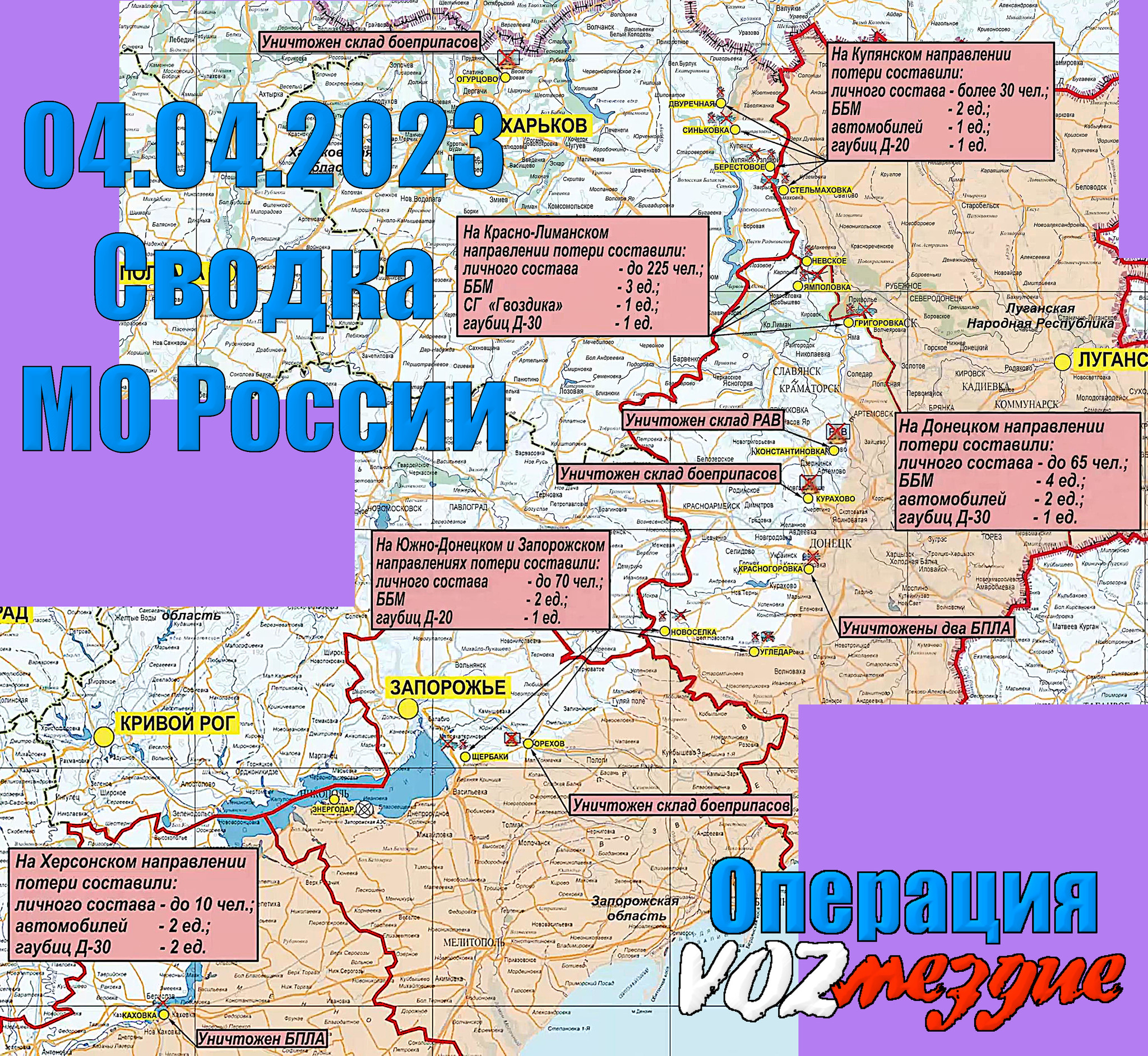Сводка Минобороны России о ходе СВО за 4 апреля