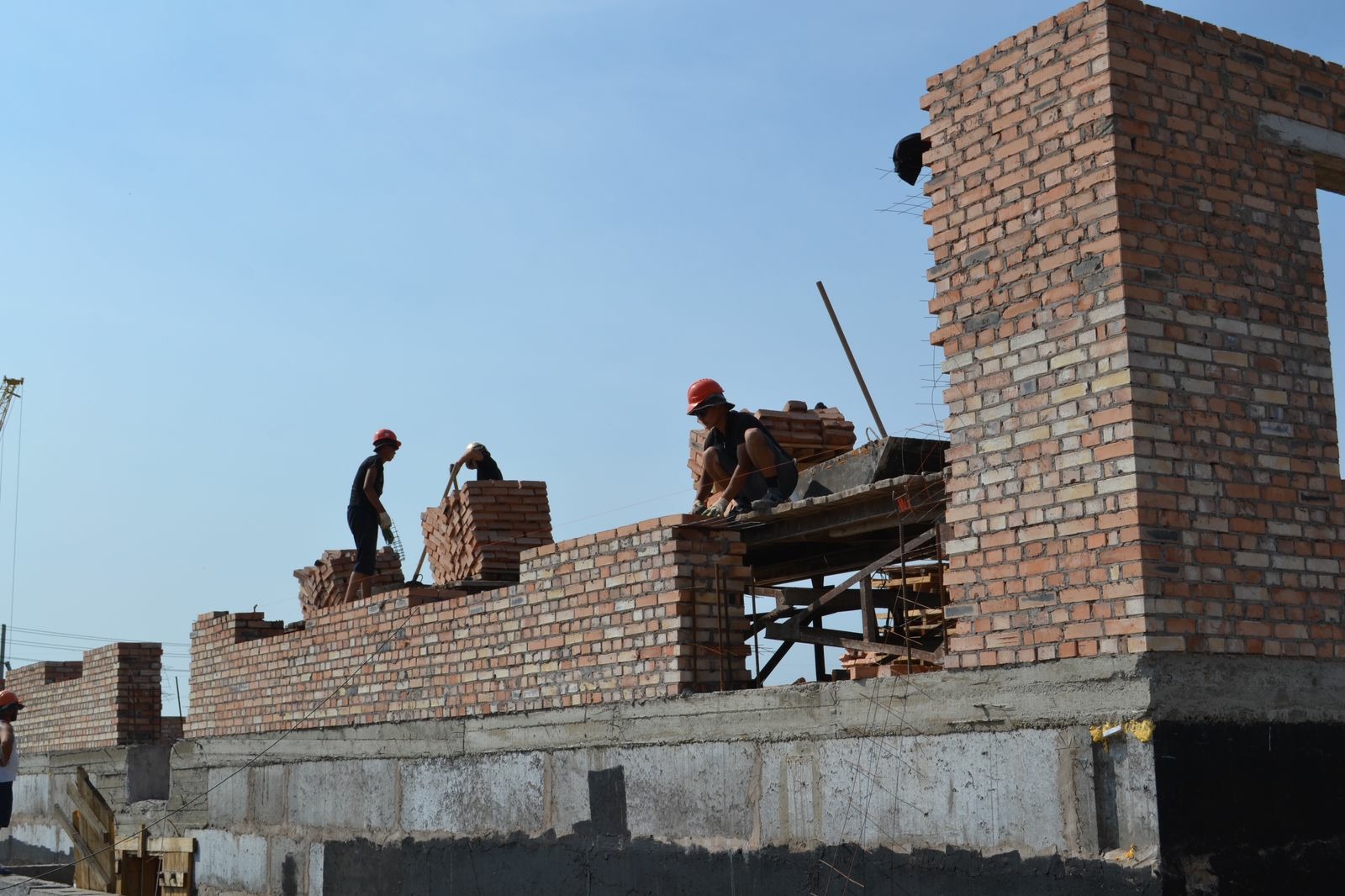 – Быстрыми темпами ведется работа по устройству кирпичной кладки стен первого этажа. Смонтированы перемычки, подведены стены под отметку устройства плит перекрытия одной из трех секций здания. Осуществляется подготовка к установке опалубки монолитных сердечников первого этажа , – рассказал о ходе работ ведущий инженер строительного контроля ООО «Абакстрой» Надежда Ваганова .