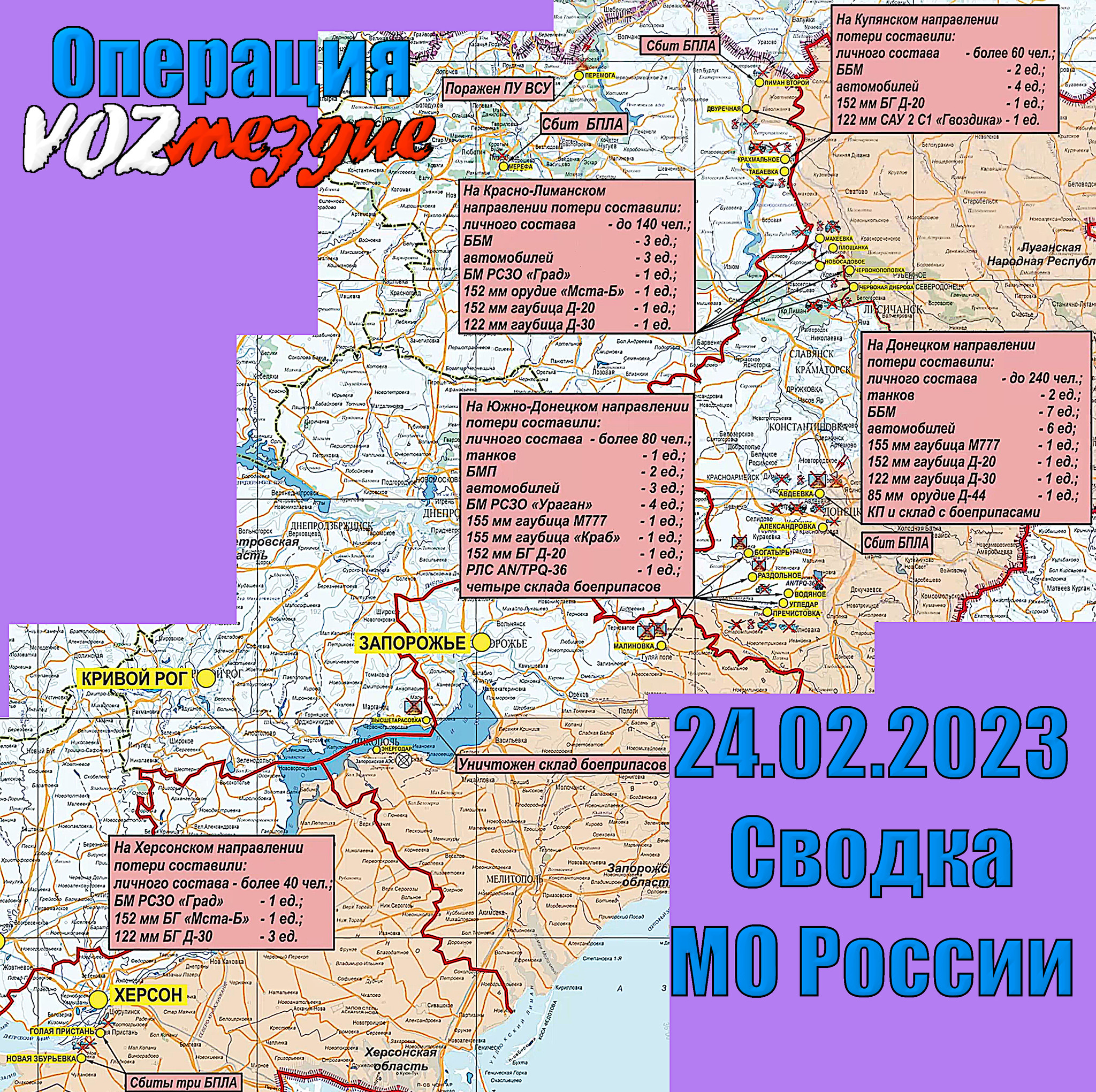 О событиях 24 февраля сообщается в сводке Минобороны России.