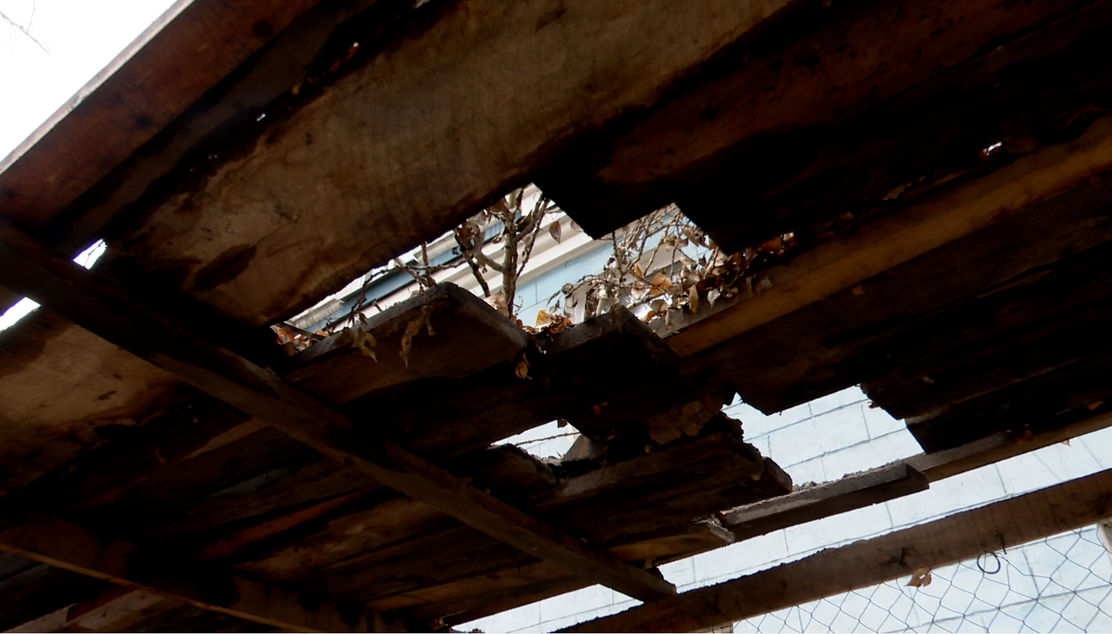 Ограждение у ремонтируемого здания в дырах.