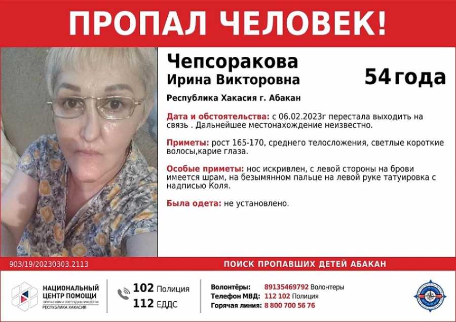 В Хакасии волонтеры разыскивают Ирину Чепсоракову.