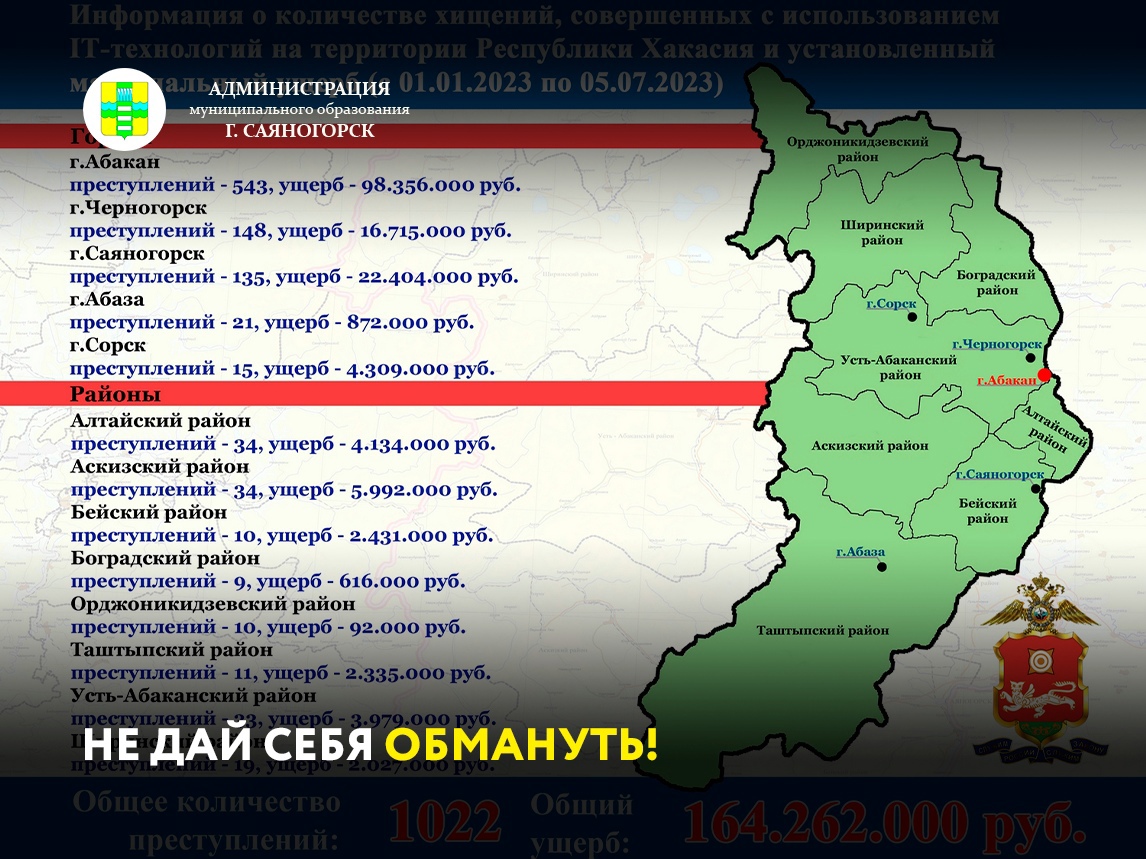 Всего за 6 месяцев 2023 саяногорцы лишились 22 миллионов 404 тысяч рублей.
