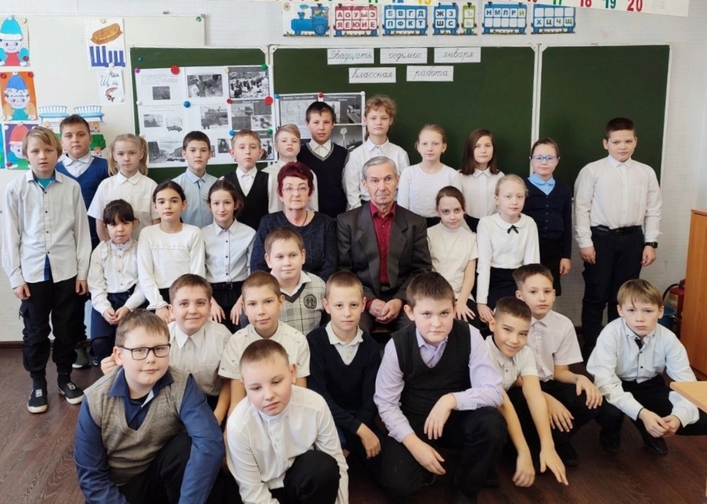 А сегодня к ребятам в класс пришли члены общественной организации Дети войны Прокопьева Т. В. и Ишутченко Л. А. Татьяна Валентиновна не только рассказала о тяжёлых днях Ленинграда, но и вместе с ребятами взвешала чёрный хлеб на весах, чтобы наглядно показать, сколько граммов выдавалось на человека.