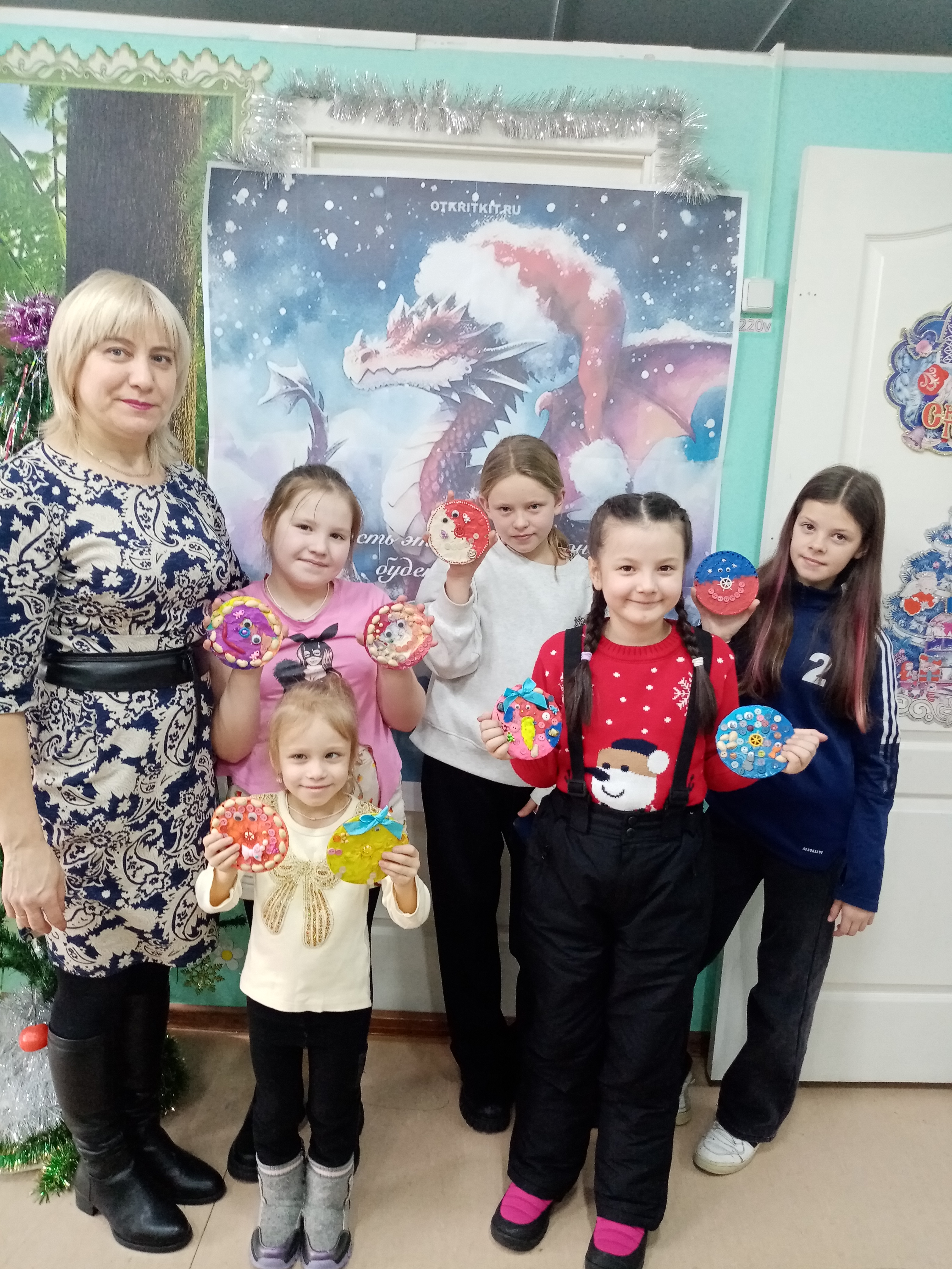 Новогодние каникулы в библиотеке – это весело, познавательно и интересно. Это время, когда можно с пользой провести время, что и сделали читатели детской библиотеки. Участниками мастер-класса стали советник директора МБОУ «АСОШ № 50 им. Л.Н. Загрядской» Светлана Павловна Мусихина вместе с учениками школы. Ребята под руководством библиотекаря Ольги Вячеславовны смастерили новогодний сувенир из таких материалов как: диск, пшено, бисер и пуговица. Получилось – здорово!