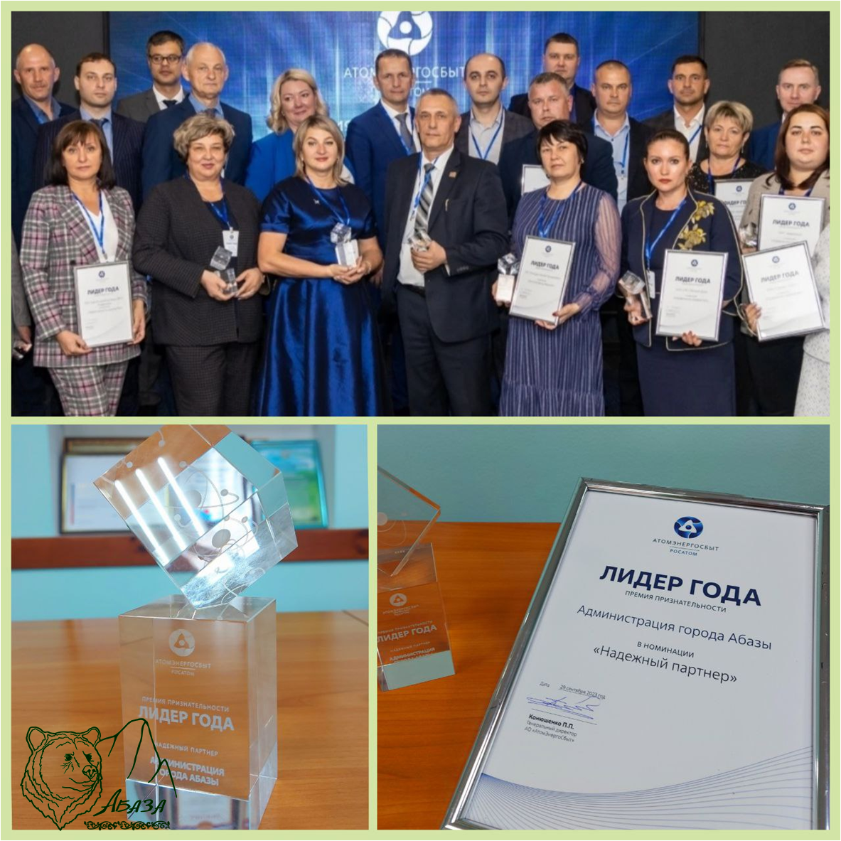 29 сентября 2023 года АтомЭнергоСбыт вручил премию признательности «Лидер года» наиболее ответственным клиентам и партнерам в республике, которые заботятся об энергоэффективности своих объектов и соблюдают договорные отношения, производя своевременную оплату услуг. Мероприятие проходило с участие Главы Хакасии В.О. Коновалова.