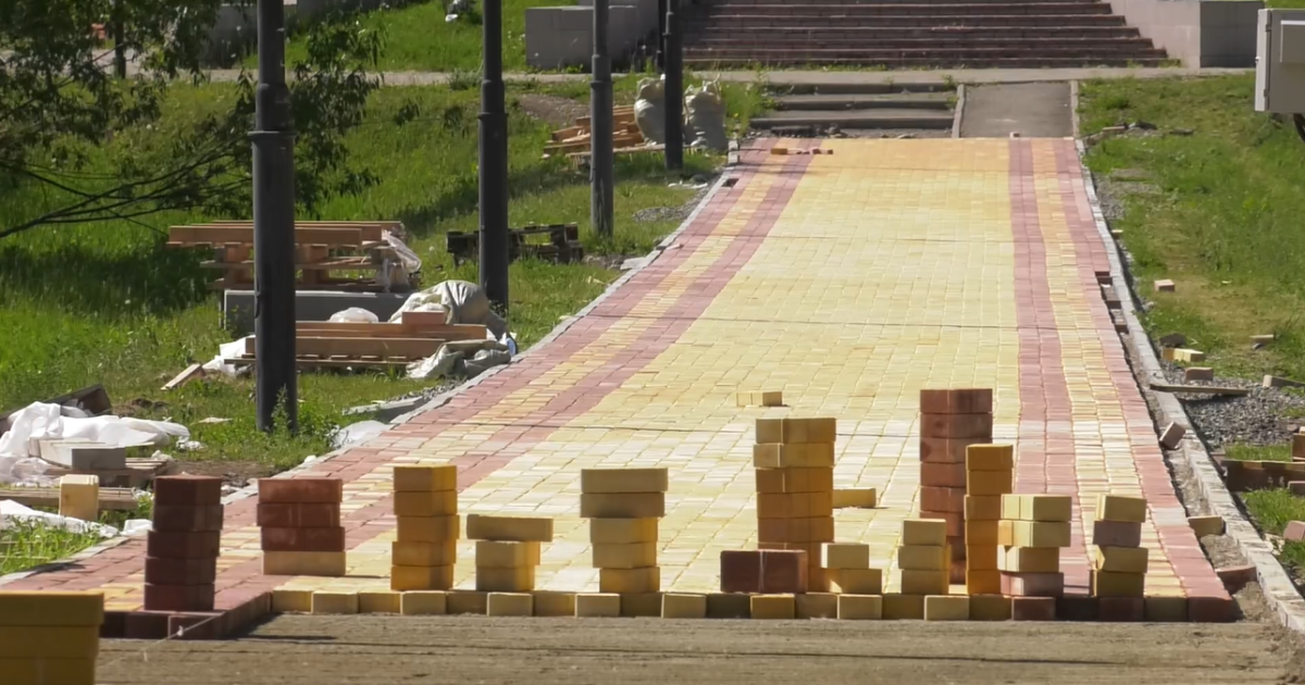 Дорожки ремонтируют в Преображенском парке Абакана