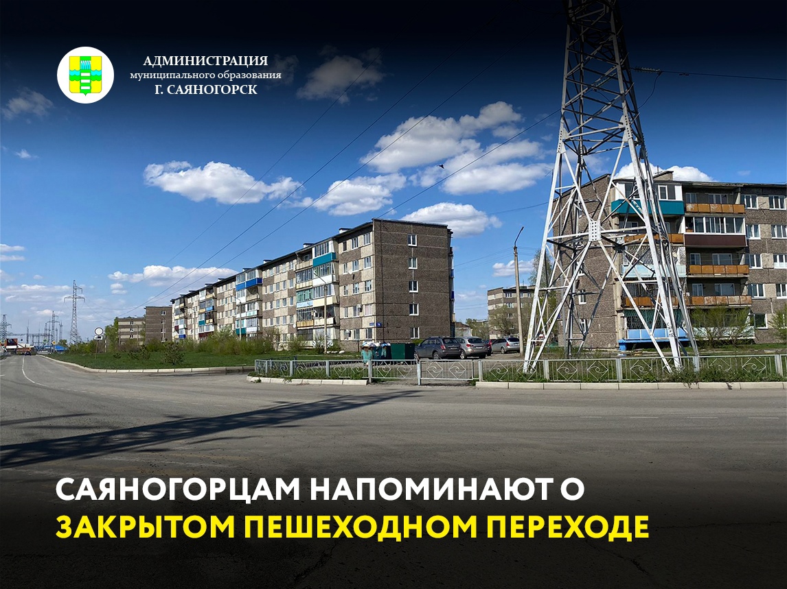 ГИБДД Саяногорска напоминает жителям города, что в минувшую пятницу был закрыт пешеходный переход по улице Металлургов с Интернационального микрорайона до ДЮСШ