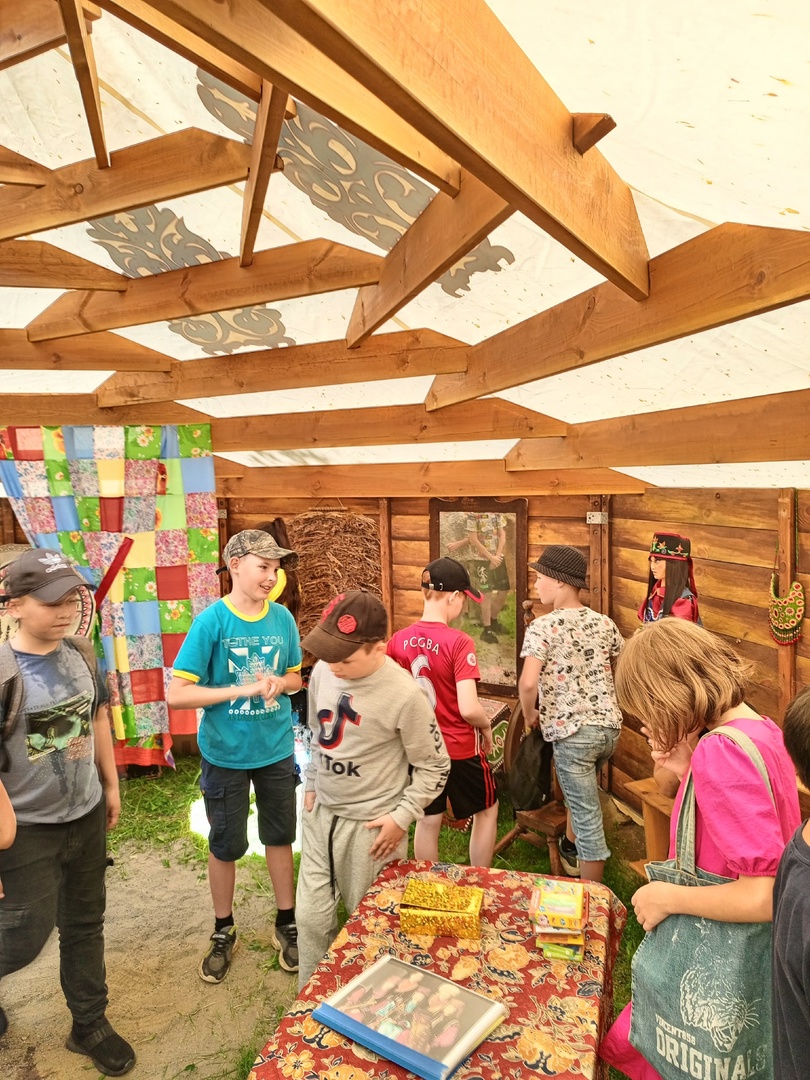 Ее первыми посетителями стали дети летней площадки школы № 50, они узнали важные понятия о семейном укладе хакасской семьи, добрых и мудрых обрядах, словах благодарности и приветствия на хакасском языке. Поучаствовали в интерактивном мастер-классе – национальное украшение-оберег «Пого».