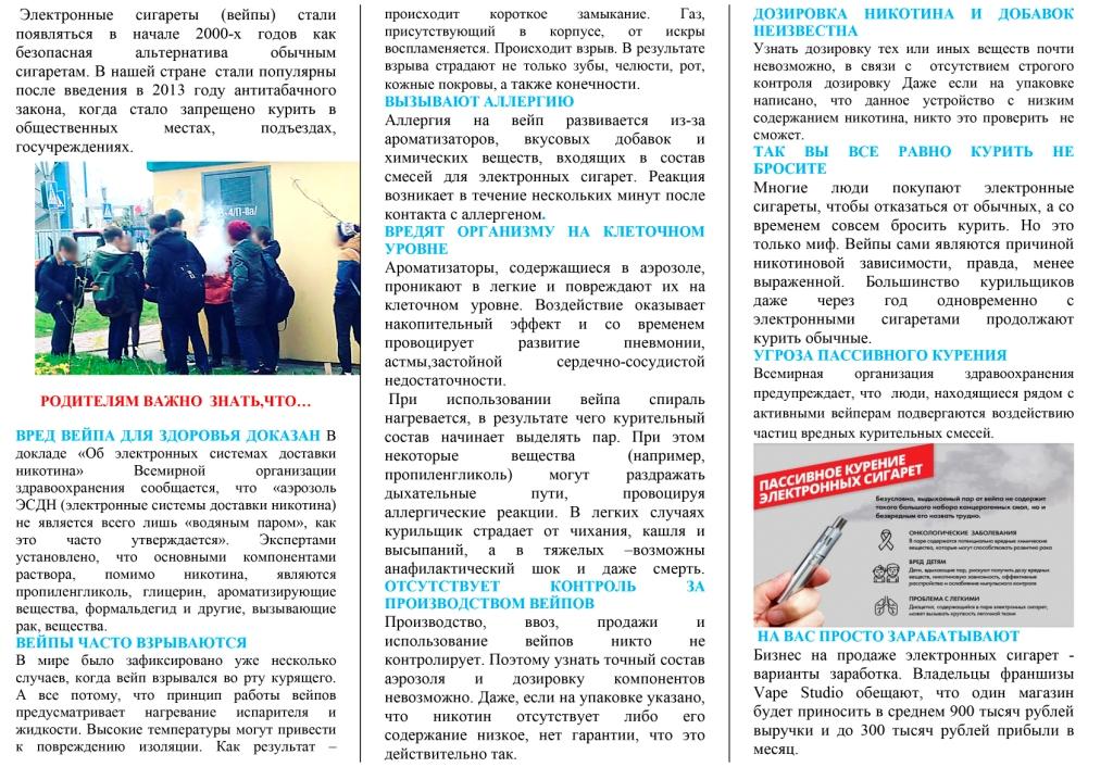 УВАЖАЕМЫЕ РОДИТЕЛИ! Обращаем ваше внимание на недопустимость употребления детьми никотиносодержащей продукции, курения электронных сигарет.