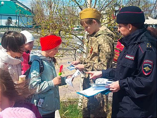 А ещё гражданам напомнили о правилах личной и дорожной безопасности и также вручили всем участникам мероприятия главный символ Дня Победы – георгиевские ленты.