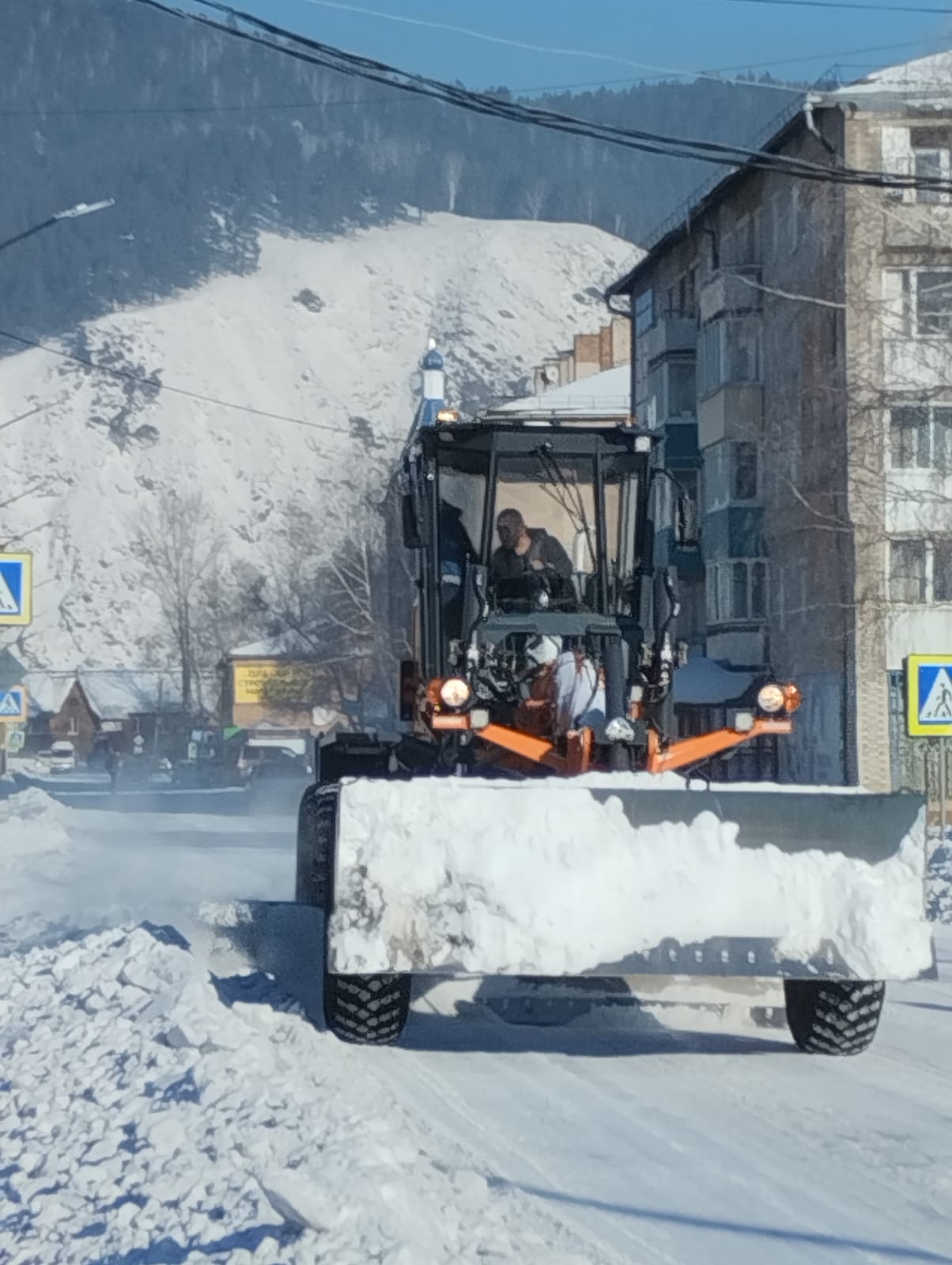 Продолжаются дорожные работы по уборке снега после проведенной вчера срезки колеи на центральных дорогах Абазы.