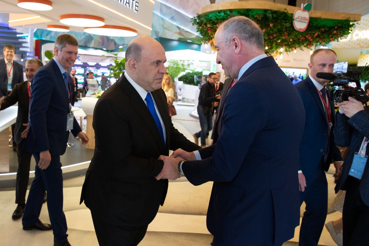 «У стенда КЧР представил Председателю Правительства РФ Михаилу Мишустину проекты, которые вошли в Модель экономического развития Карачаево-Черкесской Республики.