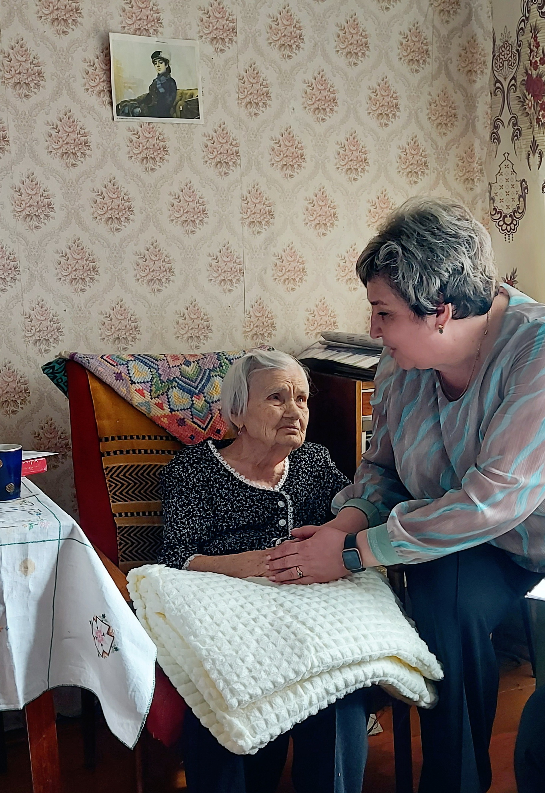 Глава города В.Н. Филимонова вместе с руководителем Управления социальной поддержки населения Н.В. Дресвянниковой побывали в гостях у юбиляра, поговорили по душам и поздравили с днём рождения.