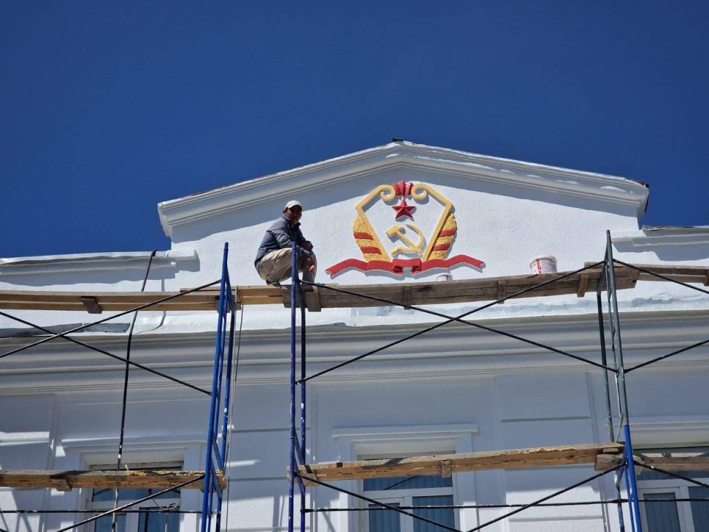 Серп и молот и красная звезда: фасаду ремонтирующегося в Белом Яре музея вернули первозданный вид