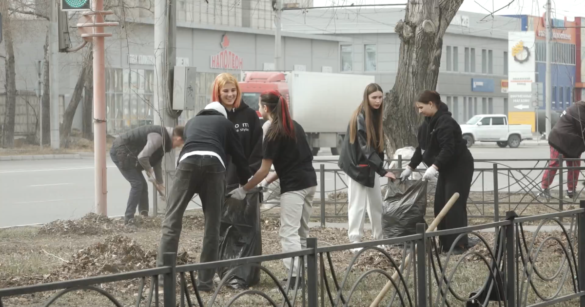 В Абакане продолжаются субботники. Присоединяются к большой уборке и учащиеся образовательных учреждений.