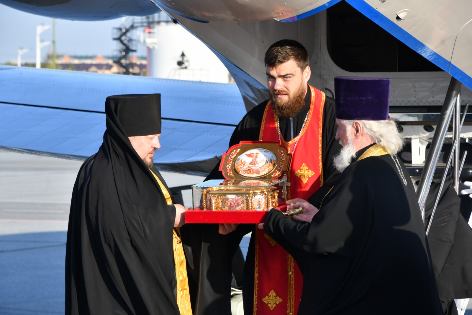 ⚡️В Абакан доставлен ковчег с частицей мощей святого великомученика Георгия Победоносца — небесного покровителя Русского воинства.
