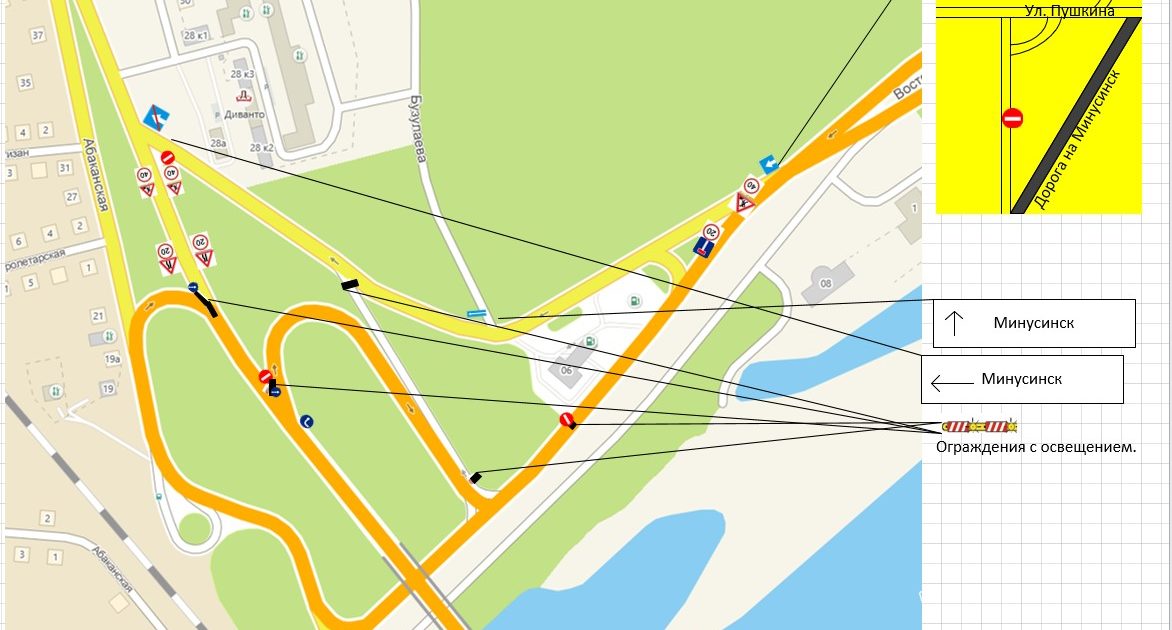 Сегодня в течение дня подрядчик выставит бетонные блоки, которые будут разделять потоки движения. А работники абаканской службы благоустройства выставят дополнительные знаки по схеме объезда.