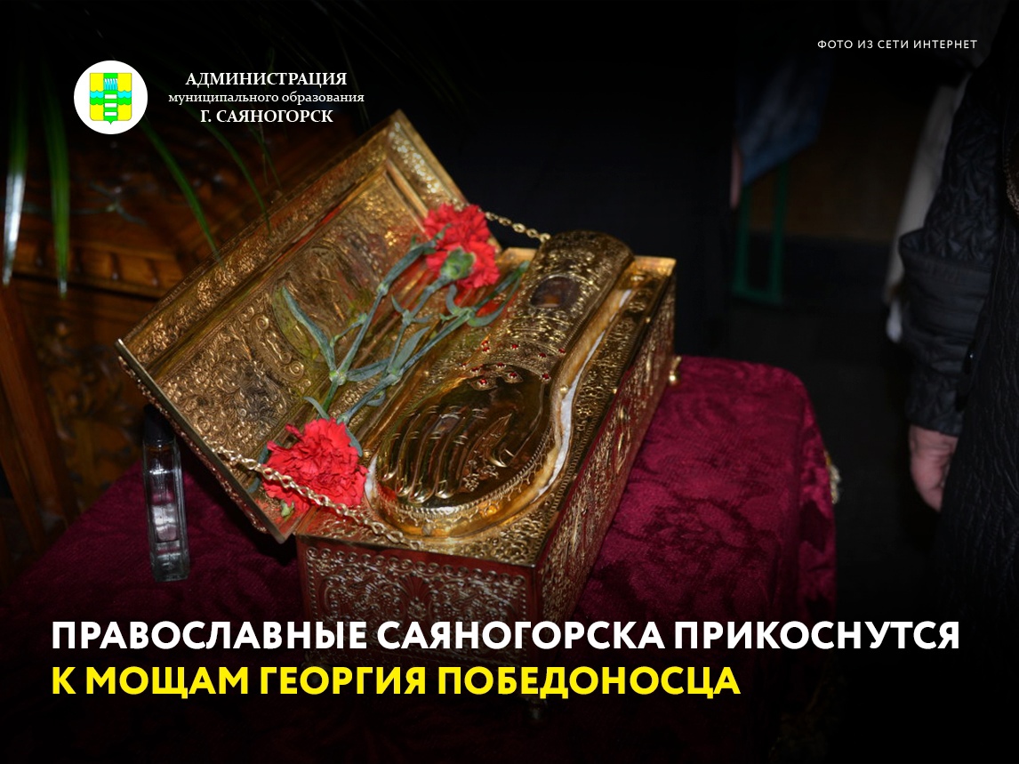 Прикоснуться к святыне можно будет в городском Свято-Троицком храме с 12.10 до 12.40. После этого ковчег перевезут в часовню в честь иконы Божией Матери «Живоносный Источник» на Саяно-Шушенской ГЭС. А с 14.30 до 15.45 поклониться святым мощам великомученика Георгия Победоносца православные смогут в Вознесенском храме поселка Черемушки.
