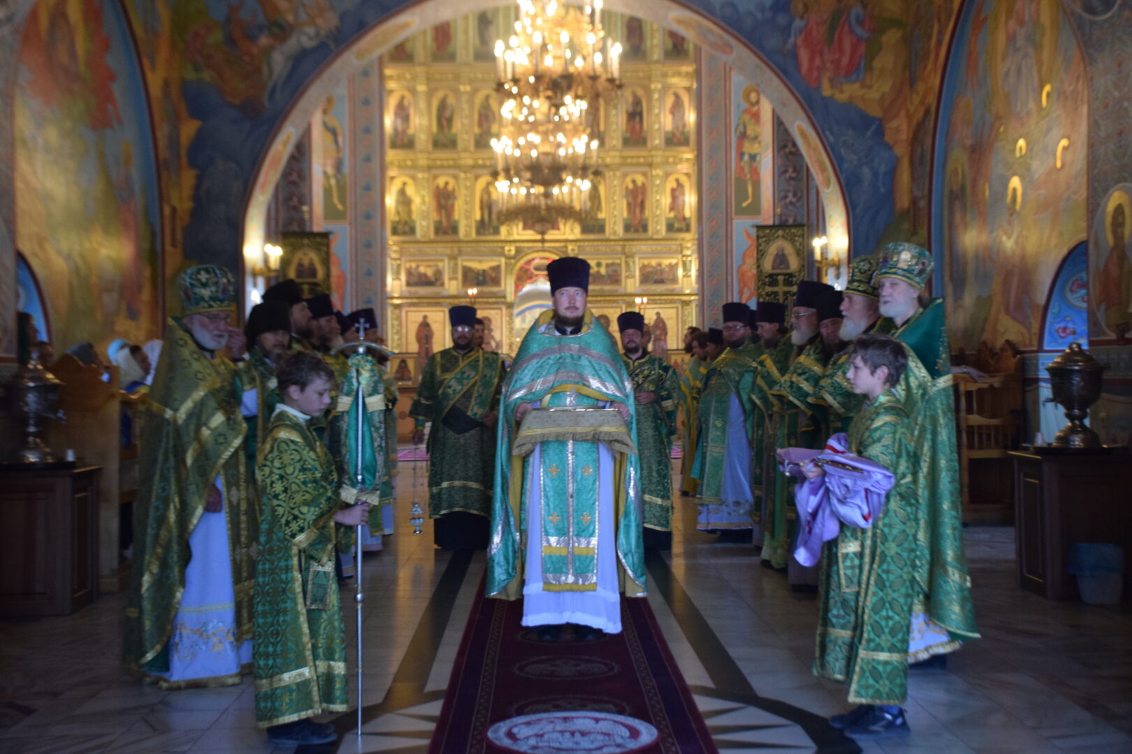 В день праздника архипастыри в сослужении епархиального духовенства совершили Божественную Литургию в Спасо-Преображенском кафедральном соборе столицы Республики Хакасия. За богослужением пели два хора (правый – под управлением Марии Ермаковой и левый – под управлением монахини Екатерины (Соловьевой).