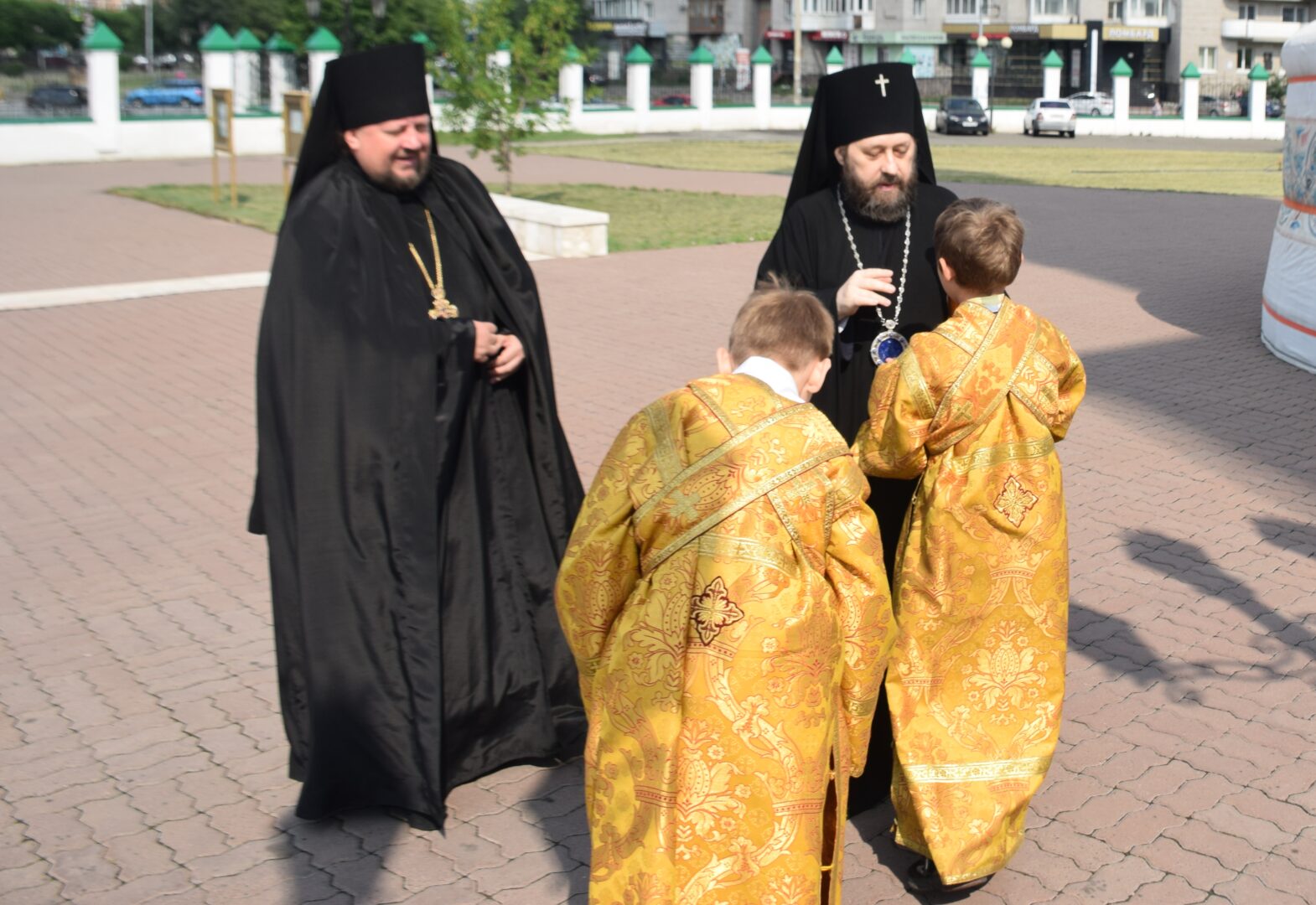16 июля 2023 года, в Неделю 6-ю по Пятидесятнице, в день празднования Перенесения мощей святителя Филиппа, митрополита Московского и всея России, чудотворца, и в день памяти святого мученика Иакинфа, Преосвященный архиепископ Абаканский и Хакасский Ионафан совершил Божественную Литургию в Спасо-Преображенском кафедральном соборе столицы Хакасии.