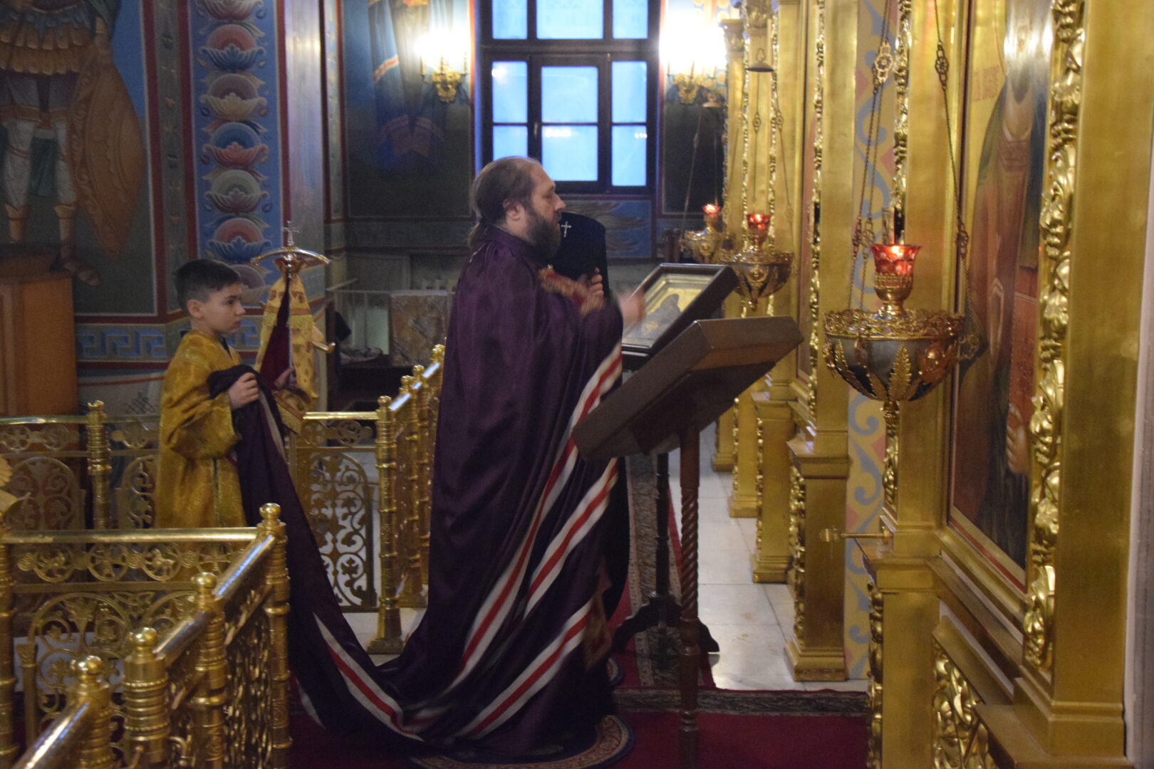 В субботний день Преосвященный архипастырь совершил Божественную Литургию и панихиду