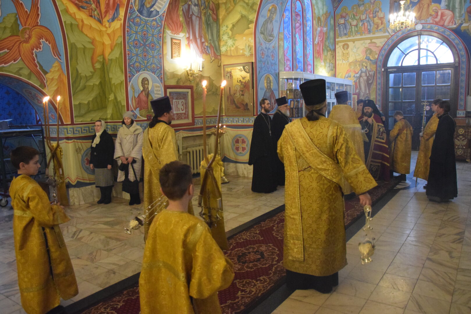 25 февраля 2023 года, накануне Недели сыропустной (Прощеного воскресенья), Преосвященный архиепископ Абаканский и Хакасский Ионафан возглавил совершение Всенощного бдения с литией и освящением хлебов в Спасо-Преображенском кафедральном соборе в г. Абакане.