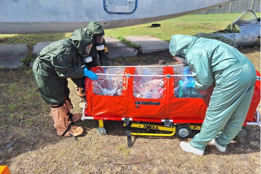 На учениях отработан алгоритм первичных противоэпидемических мероприятий и механизм межведомственного взаимодействия при выявлении больного с подозрением на особо опасное инфекционное заболевание для локализации и ликвидации очага, порядок транспортировки заболевшего в инфекционный стационар, мероприятия в отношении контактных лиц и по заключительной дезинфекции, а также применение средств индивидуальной защиты при особо опасных инфекциях и пр.