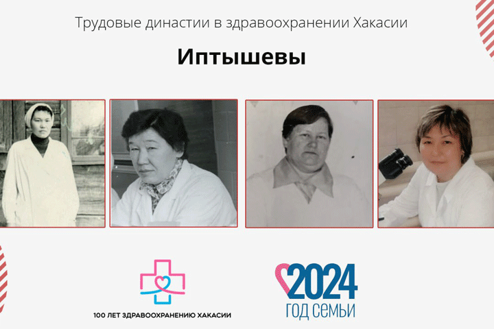 Основательница династии - Маина Петровна Иптышева. После окончания Красноярского мединститута в 1961 году была направлена в больницу в селе Бондарево. Прошла специализацию по дерматовенерологии в Новокузнецком институте усовершенствования врачей и в 1963 году назначена на должность врача-дерматовенеролога в Аскизской районной больнице. В 1966 переведена в кожно-венерологический диспансер Абакана, назначена главным врачом.