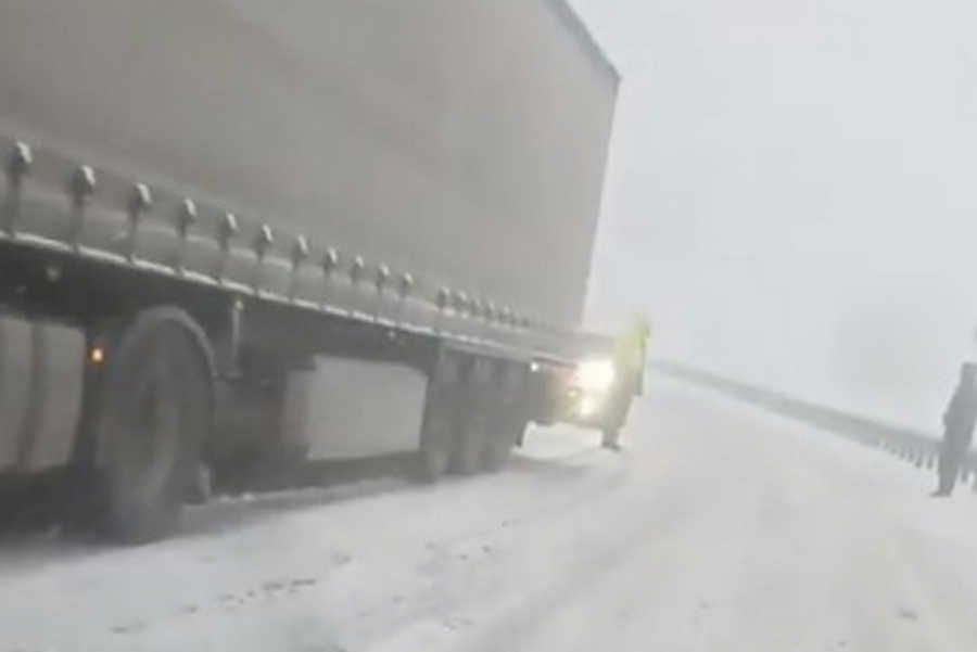 В пабликах соцсетей пуликуются видео, где лековые автомобили и большегрузы не без труда проезжают в районе полки.