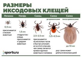 Среди всех кровососущих паразитов Иксодовые клещи являются одним из наиболее опасных для людей и животных. Все они паразитируют на млекопитающих, птицах и рептилиях. Не обходят стороной и человека. Насекомые проходят разные этапы своего развития: яйцо, личинка, нимфа, имаго(взрослая особь). На каждом из этих стадий (кроме яйца) паразит питается один раз. Зато как! Присосавшись к жертве, он может висеть несколько дней. Сам он отпадает только, тогда, когда «наестся». При этом размеры клеща увеличиваются в несколько раз. Наиболее крупные виды после «пиршества» могут достигать в длину до 2-3 см. более мелкие до 1,5 см. это очень существенные изменения. Особенно, если учитывать их исходный размер. При этом самки, как правило, крупнее самцов.