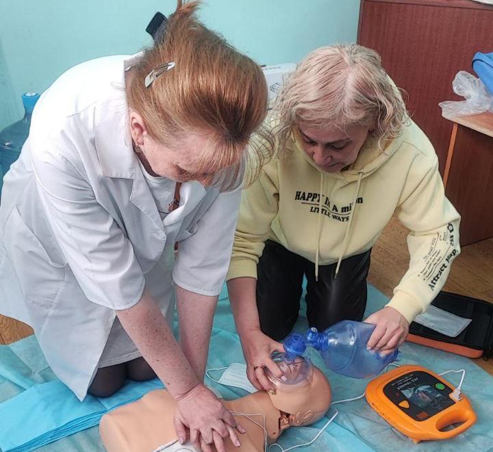 Практические и теоретические навыки медицинские работники отрабатывали на симуляционных куклах младенца и взрослого пациента.