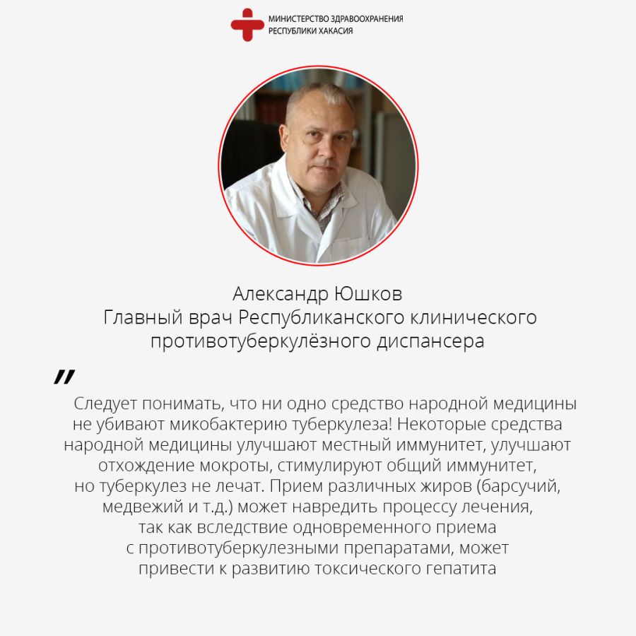 Александр Юшков отмечает - народные средства бессильны в лечении туберкулёза.