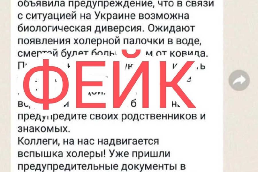 В мессенджерах и социальных сетях снова жители Хакасии и юга Красноярского края снова стали получать информацию об обнаружении в источниках питьевой воды холерных вибрионов. Как объясняют в Роспотребнадзоре Хакасии, это фейк, причем 2022 года. Информация из сообщений не соответствует действительности.